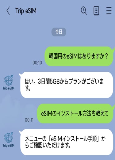 LINE公式アカウントを使用して海外旅行用のeSIMの選択・購入・お問い合わせが全てできます